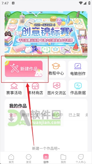 2、进入创作中心后,点击“新建作品”按钮,开始搭建你的故事框架;