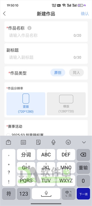 3、按提示填写作品名称、简介、标签等基本信息,确认无误后提交;