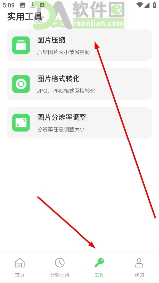 3、如需压缩图片以加快处理速度或节省存储空间,可切换至“工具”页面,点击“图片压缩”进入相关功能界面。