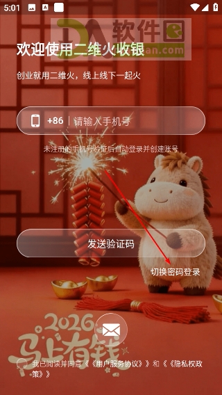 1、打开App后,点击登录页上的“切换密码登录”选项;