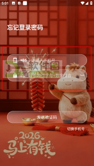 3、输入你注册用的手机号和新密码,系统会发送验证码到手机;