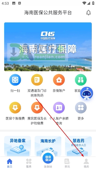 1、打开“海南医保”App,点击底部【我的】进入登录页面;