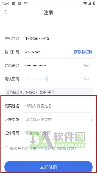 4、补充真实姓名、身份证号等个人信息,勾选用户协议,点击提交,注册就完成了。