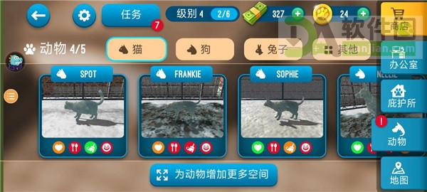动物收容所是一款专注于救援与养护动物的日常经营管理游戏,在一个不断发展壮大的收留场所里,从简陋的救援区域起步,通过接纳、安顿与呵护各类动物,让整个运营体系逐步健全。在日常维护工作中需要密切留意动物状况,涵盖身体状况、心情状态与生活要求,并依实际情况进行医疗、喂食与清理等工作安排。同时还需科学安排场地布置,让各个分区能够高效运转。随着事业发展推进,可以逐步扩建基础设施规模,增设更多功能性区域,让收留容量持续增长。各类动物都有独特的需要与习性特征,需要在管理实践中采取专门化处理。在长期运营中还会面临突发状况,比如伤病动物急救或收留负担加重,需要迅速调整部署。通过持续改进管理和扩建设施,让收留站从初级救援点慢慢发展成完备的动物庇护中心,在持续关爱与建设过程中感受责任与进步带来的转变。