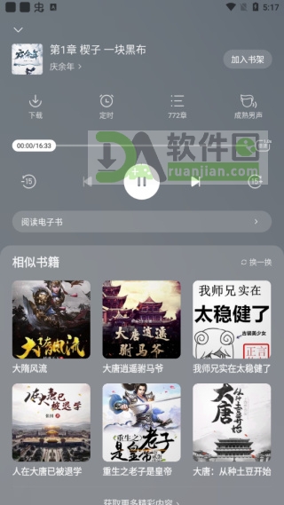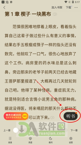 3. 在阅读界面轻触屏幕呼出功能菜单,点击【听书】按钮即可切换至语音朗读模式;