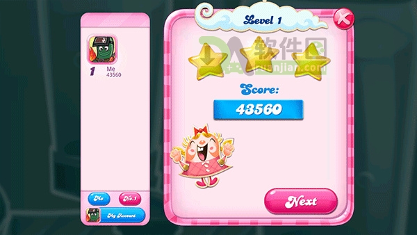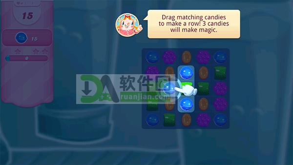 1、通过交换相邻糖果的位置,使三个或更多同色糖果连成一线来完成关卡任务;