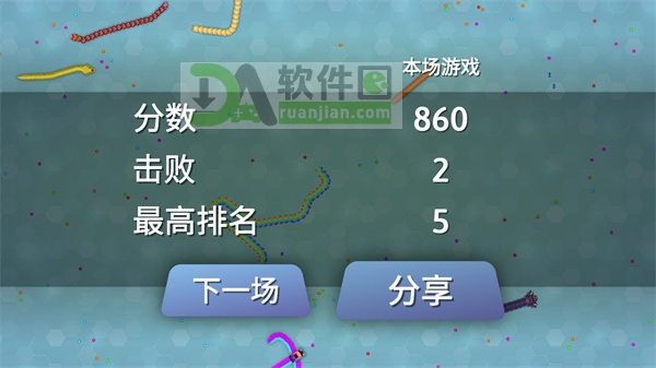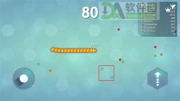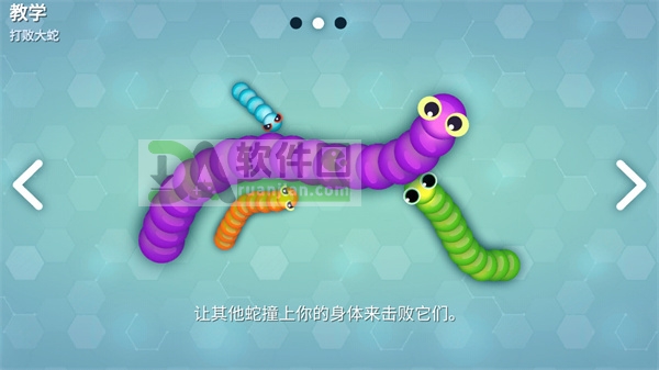 1、操控蛇形角色在地图上游动并摄取食物颗粒以实现体型扩张;