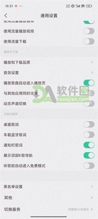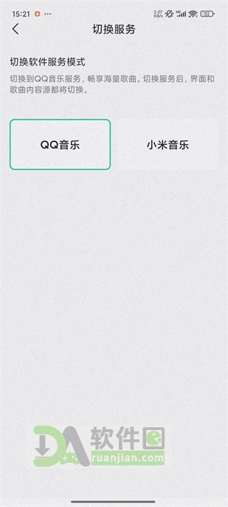 4、往下翻找到【切换服务】这一项,点进去就能看到当前可用的音乐平台;