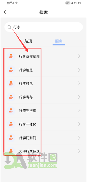3、在对应功能页顶部的搜索框里输入关键词,比如“行李寄存”或“遗失物品”,系统会立刻列出相关服务内容。