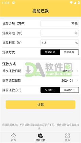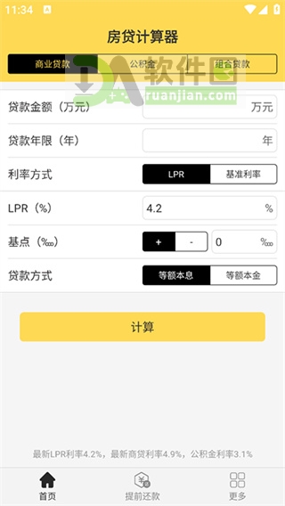 1、打开房贷计算器后,在首页输入贷款总额、贷款年限(如20年、30年)以及年利率(可手动填写或选择当前基准利率)。