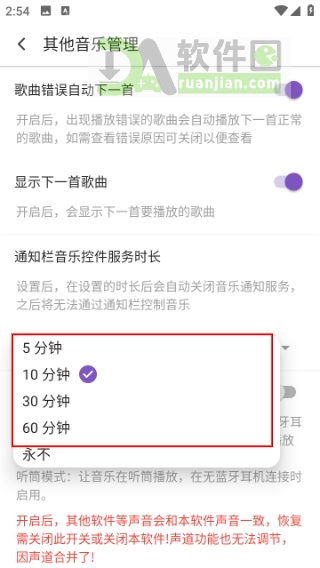 4、从下拉选项中选择你希望的通知栏控件保留时长(如30分钟、1小时、永久等),系统将自动保存设置,完成配置。