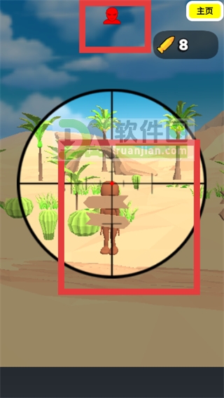 2、进入狙击界面后,校准瞄准镜的十字线,锁定场景内的对象,留意弹药数量限制。