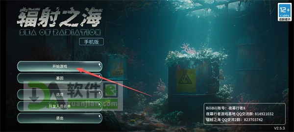 1、打开【辐射之海】应用,找到【开始游戏】选项并点击,启动游戏程序,可以先了解各个功能区域的布局。