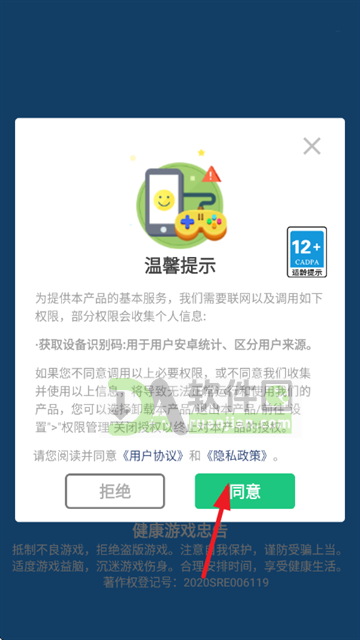 1、首先打开应用,阅读并同意《用户协议》和《隐私政策》;