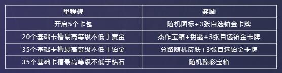 达成收集任务的里程碑,可获得自选铂金卡牌的机会(使用自选卡牌后,可合成指定卡面和等级的卡牌。)