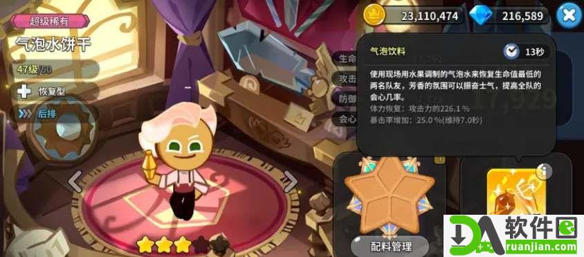 后排的气泡水饼干可以提升会心暴击并且给队友提供回血续航。