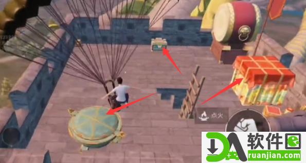2、来到这里之后可以看到有很多物资,其中还有一个绿色的龟壳,靠近可以点火;