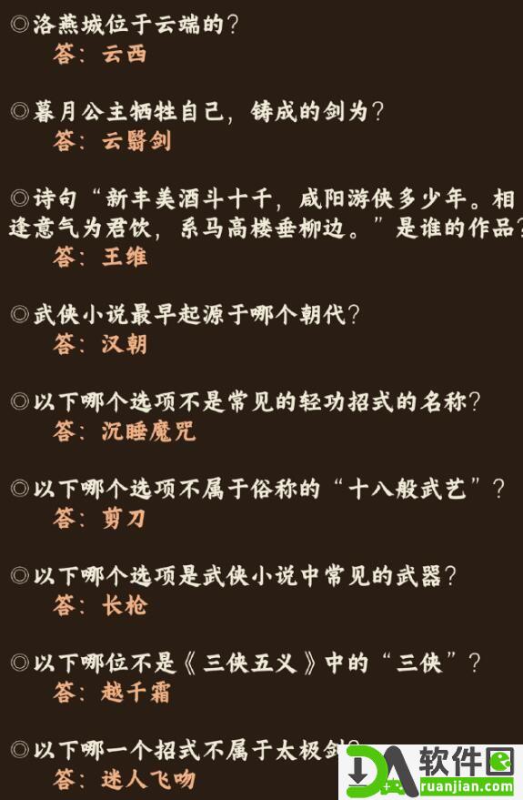 《奇迹暖暖》中的红尘侠隐答案是玩家在最新的答题活动中迎接的挑战。为了获取丰厚的奖励,玩家需要准确回答一系列问题。DA软件小编已经为大家准备好了红尘侠隐答题的全部问题和对应的答案,以下是一份详尽的攻略,供大家参考和利用。通过仔细研究攻略,玩家可以快速了解红尘侠隐答案,确保在游戏中取得优异的成绩。祝愿各位玩家在答题活动中取得丰富的奖励,享受游戏的乐趣!