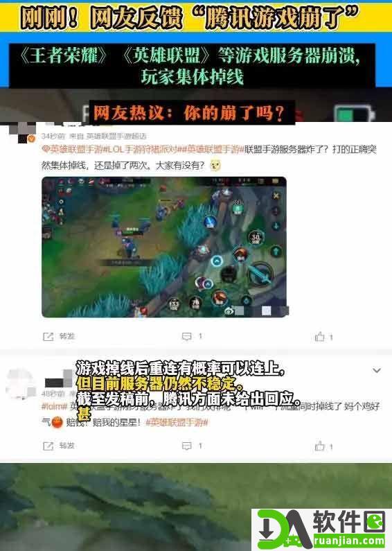 有玩家表示,“昨晚玩英雄联盟。。一直在掉线 本来是输的 打了68分钟”“腾讯游戏竟然崩了,见证历史” 。有网友在重新连接后登上了,但表示仍不稳定。