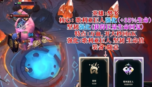 1、核心:歌利巨人强化、坚韧强化(生命回复)。